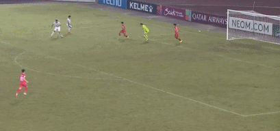 第74分鐘,張玉寧單刀突入禁區(qū)低射被門將擋出,張玉寧右腳吊射擊中橫梁。